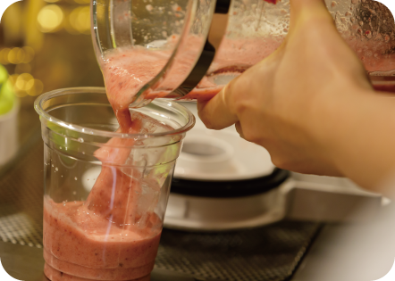 喉が乾いたら気軽に立ち寄れるジュースバー。フルーツの甘味が美味しい100%フレッシュジュースが人気です。